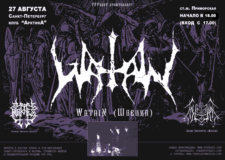 Билеты на концерт WATAIN 27 августа поступили в продажу. В Санкт-Петербурге их можно приобрести в кассах клуба и следующих точках: